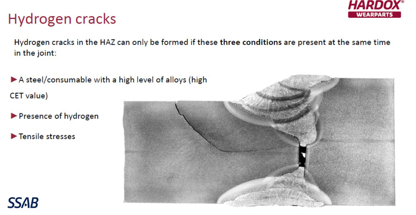 이 앱에서 적용된 용접재료는 SSAB사에서 권고하는 기본적인 요건이 갖추어진 용접재료(가능한 저수소계, 용착금속 내 수소량이 5ml/100gr 이하)이며, 그 외 기타 용접 전/후에 필요한 각종 필수 및 부필수 조건들은 일련의 절차가 (PQR/WPS 등) 필요하다는 점을 꼭 기억하시길 바랍니다! 용접 조건을 가볍게 여기고 쉽게 끝냈다간 그림과 같이 수소균열이 일어나기 십상이니까요.