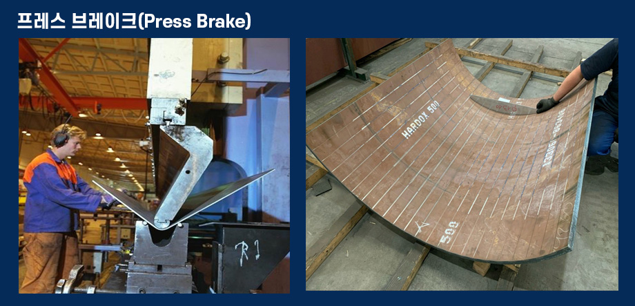 현재 현장에서 가장 보편화된 벤딩기(벤딩머신)은 크게 프레스 브레이크(Press brake)와 롤 벤딩(Roll bending)이 있습니다.