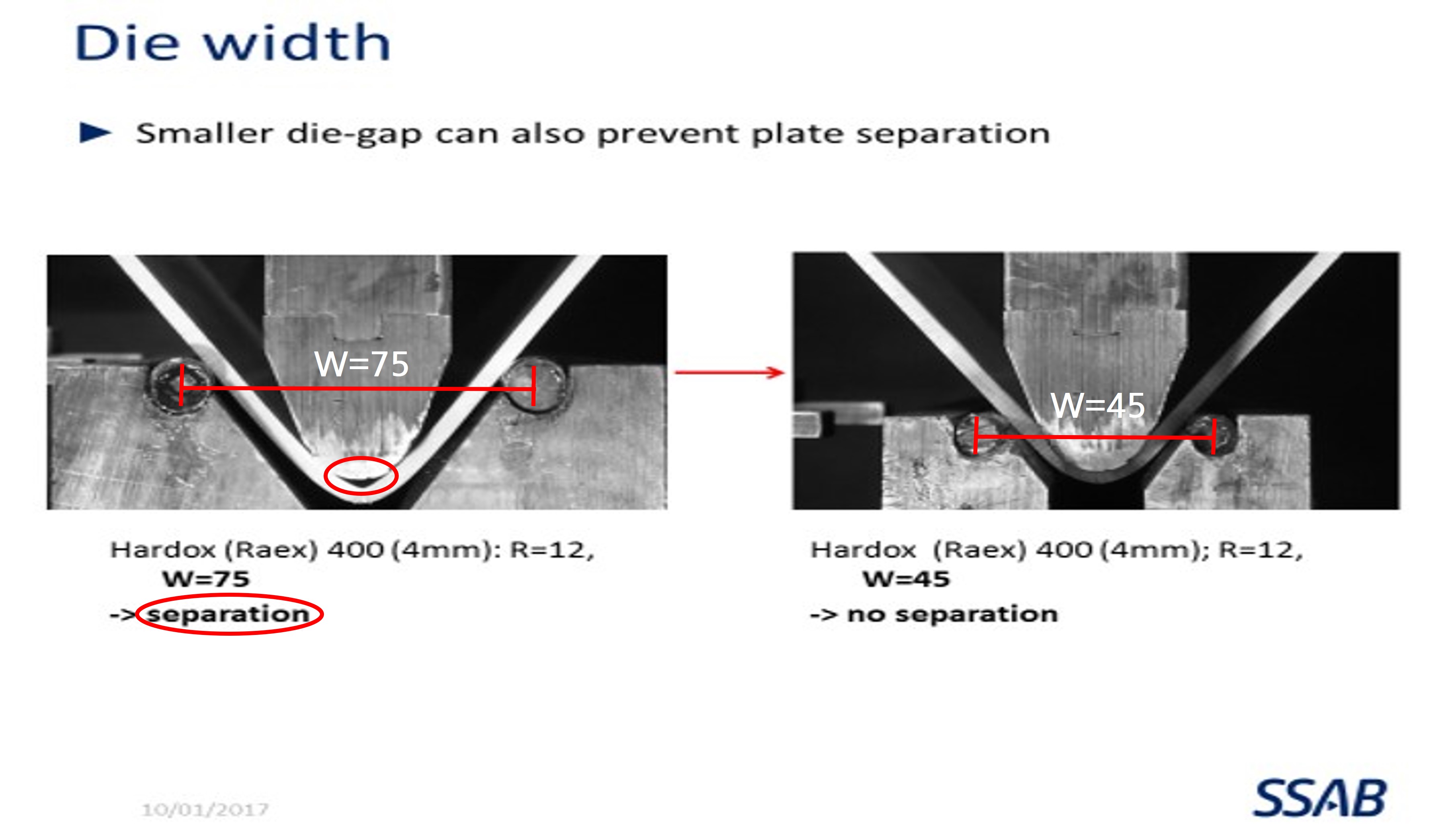 ④ 사전 예비 벤딩을 통해 위의 세 가지 조건(Spring back, Radius, Die width)을 사전에 확인하여 이상적인 벤딩 품질을 확보하는 것이 중요합니다.