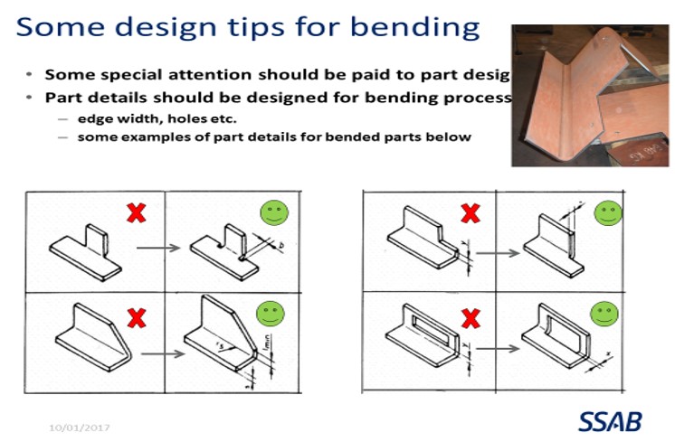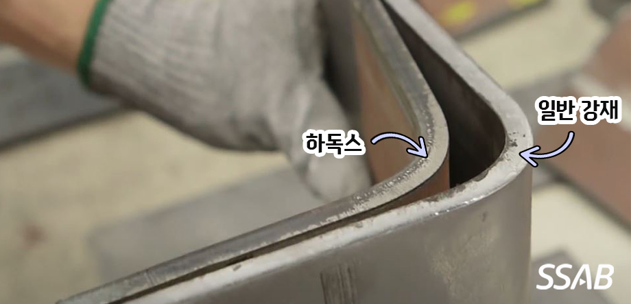 ② SSAB사에서 추천하는 제품군 별 곡률반경(bending radius)을 준수해줘야 합니다.